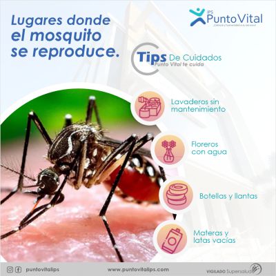 Los mosquitos del dengue se presentan en zonas urbanas con altitudes inferiores a altura 2314 sobre el nivel del mar y una temperatura media entre 20 y 25 c, ponen sus huevos en depósitos de agua limpia como albercas, floreros de plantas acuáticas, llantas, baldes de agua y cualquier recipiente que está a la intemperie y que puede almacenar agua.